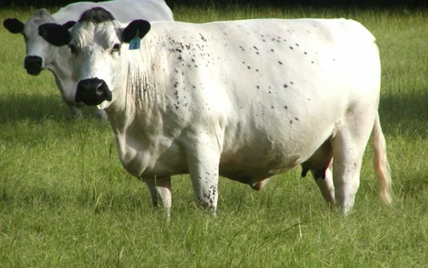 The British White Park is an old beef cattle breed originating from the British Isles. They were brought to Canada around World War II, and later, offspring were sent to the U.S., where they helped create the American White Park.