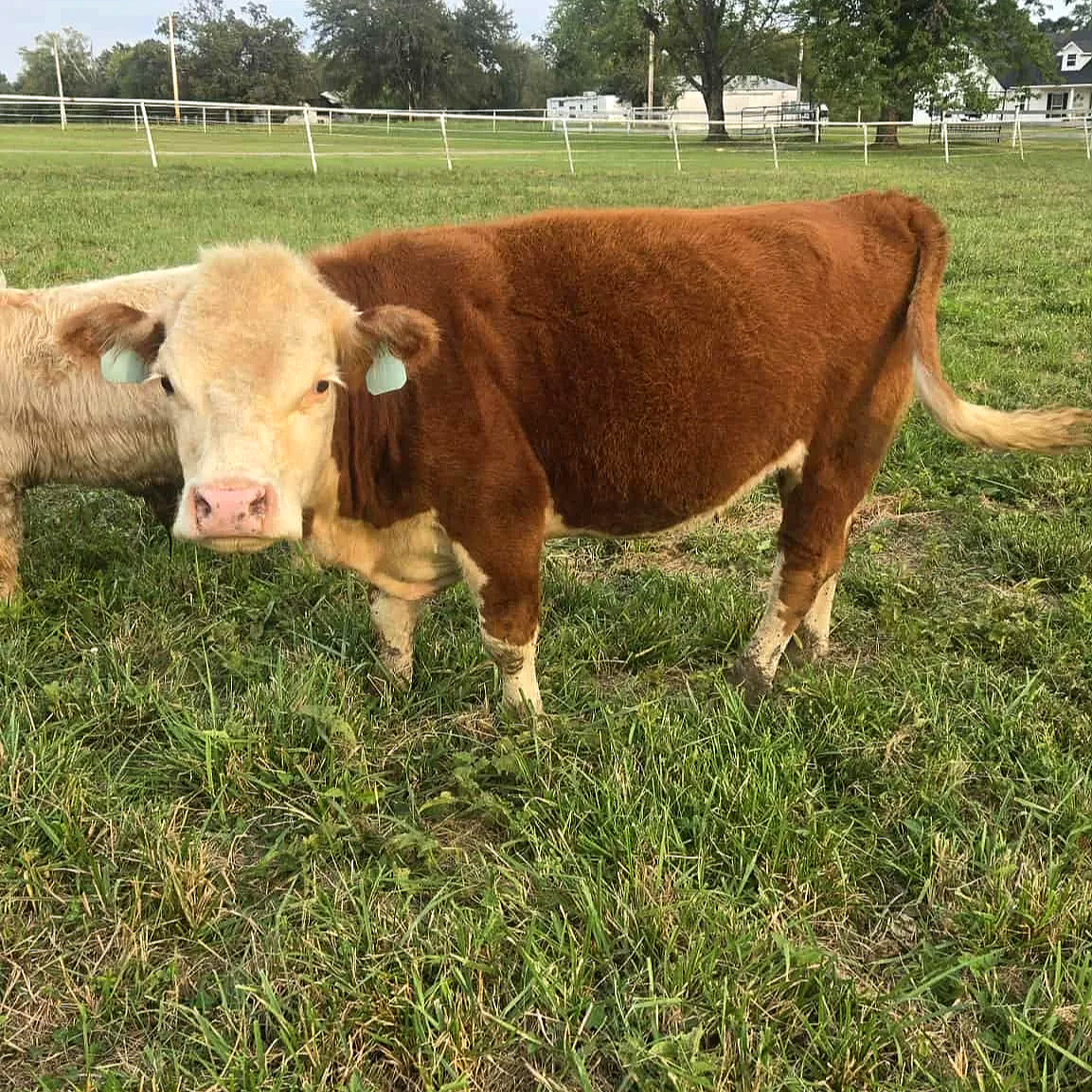 Lulu is our mini Hereford heifer. She is measures 42 inches and is full grown. She is naturally polled (no horns) We purchased her from a awesome lady that used to show her. She is such a friendly girl, a trait we look forward to her passing to her babies. 2026 will be her first ever breeding! She is scheduled for AI October 2025 to a lovely Highpark bull.